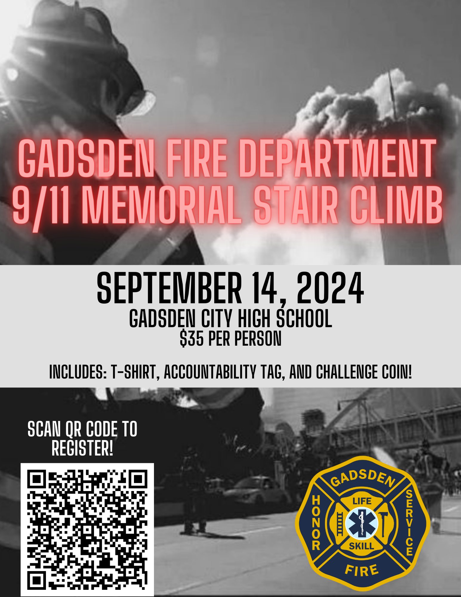 This year, the Gadsden Fire Department is starting a new tradition — the inaugural 9/11 Memorial Stair Climb event and walk — to remember that tragic day and to help support the annual Toys from Santa drive. “Each 9/11 Memorial Stair Climb participant pays tribute to a FDNY firefighter by climbing or walking the equivalent of the 110 stories of the World Trade Center. There will also be a 3.43-mile walk with no stairs available as a participation option. Funds raised will go towards the annual Toys from Santa program, which helped 500 children in Gadsden receive gifts last Christmas.
